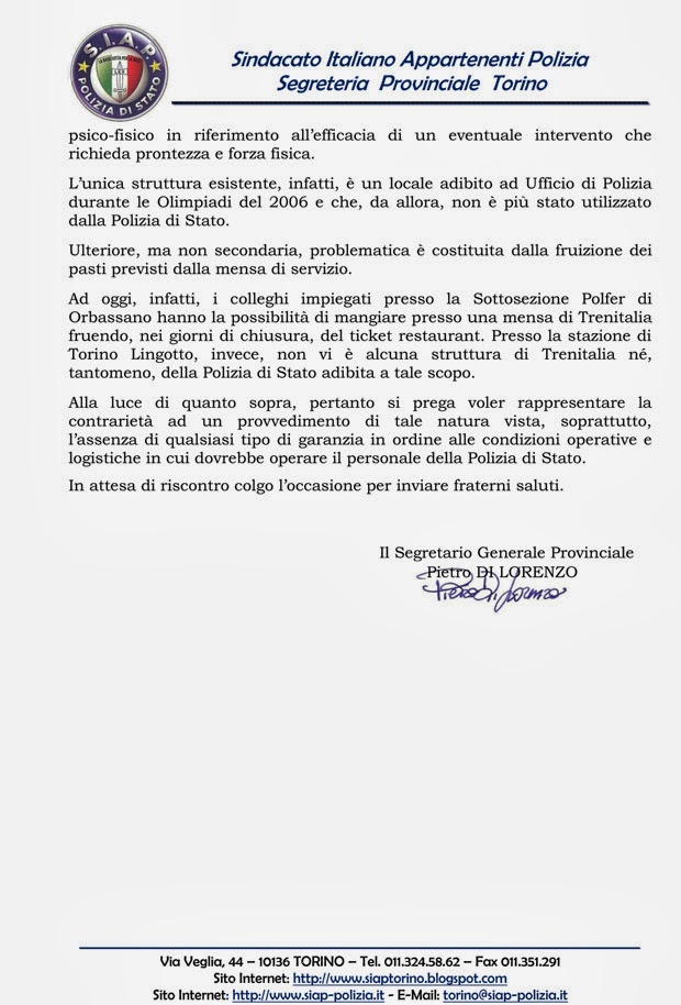 contrattuale dei poliziotti. Oggi a Torino il Segretario Nazionale Siap e tutti